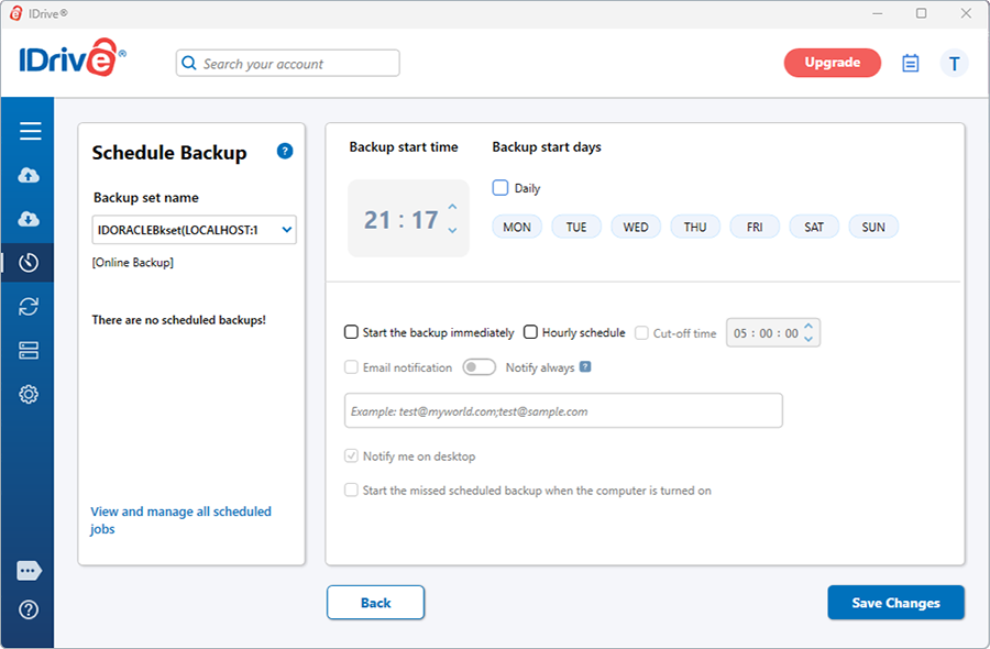 Note: On selecting ‘Online Backup’, the data will be stored on the IDrive cloud whereas on selecting 'Local Backup' or 'IDrive Express™ Backup' the data will be stored in the local drive.